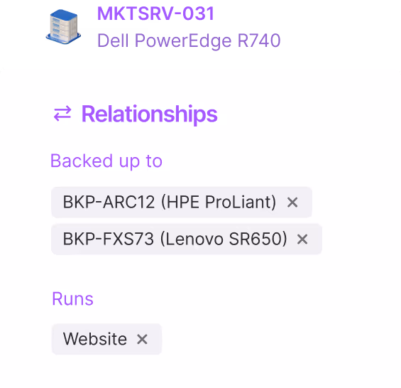 Map dependencies between assets in your inventory so you can easily map an asset’s journey.