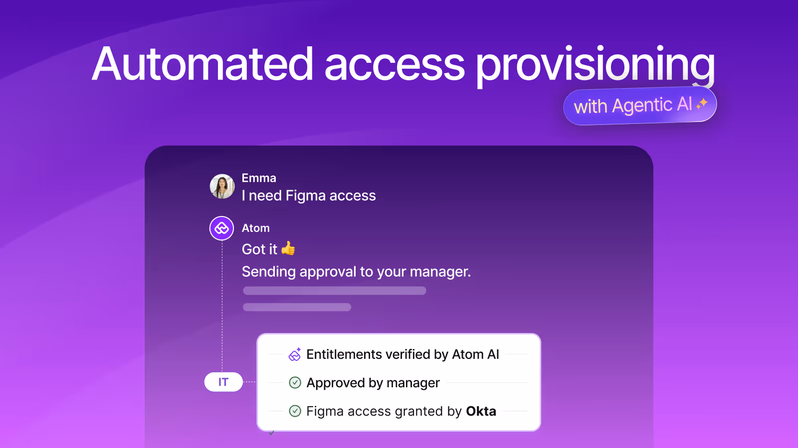 All employee information is automatically synced between Atomicwork, your HRMS, and Azure AD. This means that employees don’t have to do anything except ask Atom for what they need and it shall be taken care of.