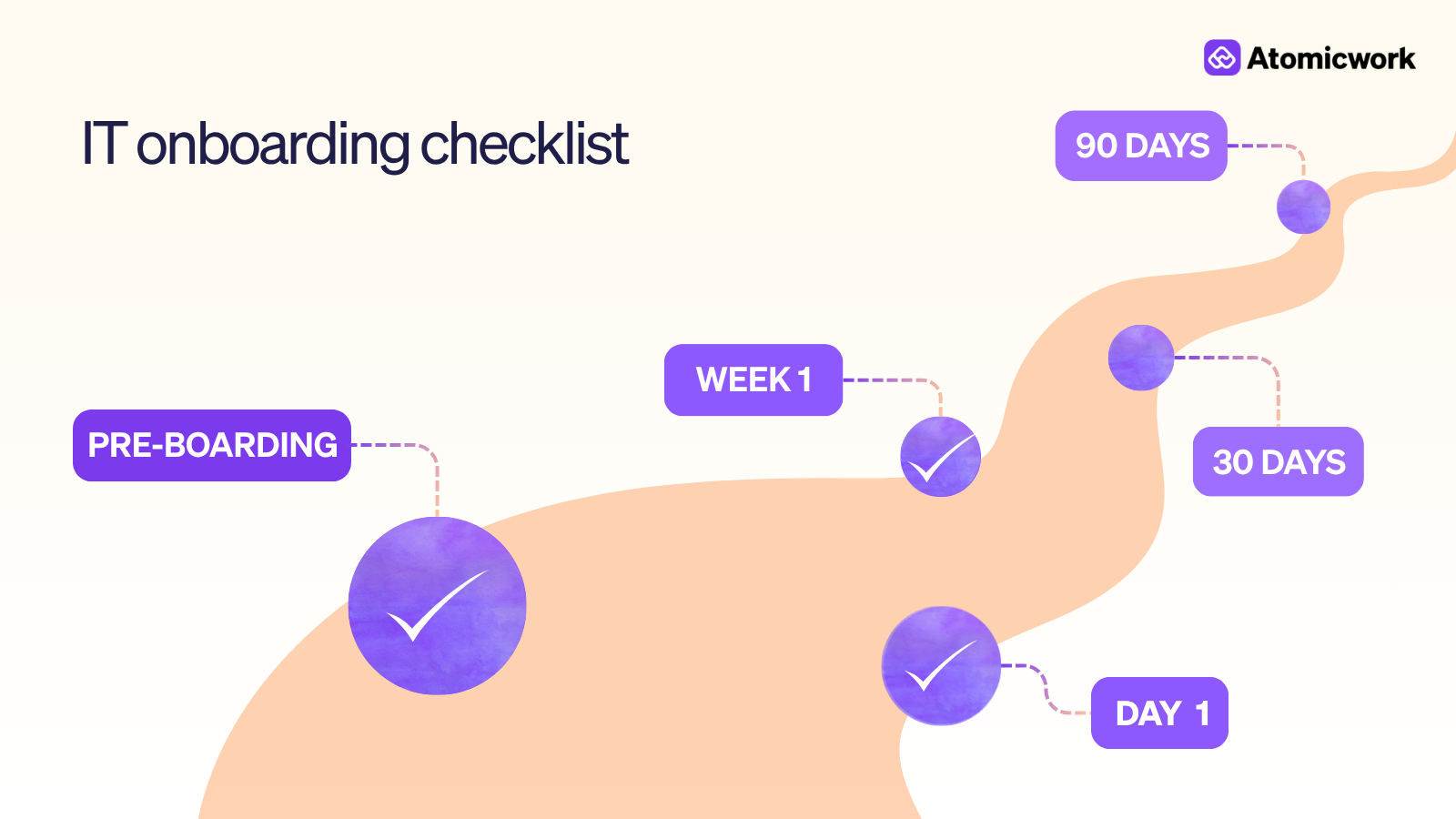 This checklist is what I use at Atomicwork: the full onboarding journey from the moment a contract is signed to the 90-day mark, when a new hire should be working autonomously without IT’s help.