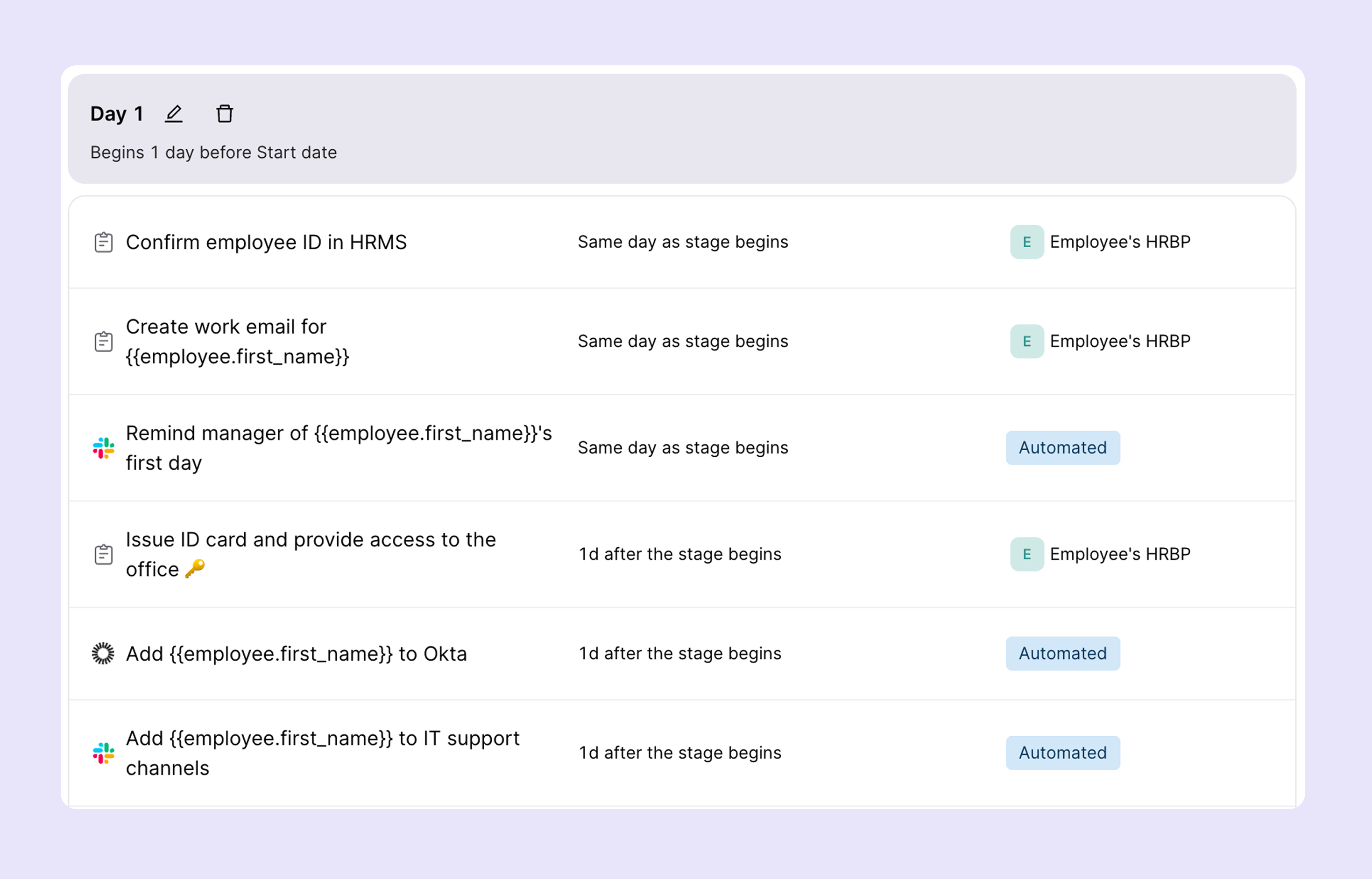 💡Pro tip: Automate provisioning triggers directly from your HRIS. When an offer is accepted in Workday or BambooHR, a workflow can kick off the entire provisioning sequence: hardware request, account creation, license assignment without a single IT ticket being raised manually.