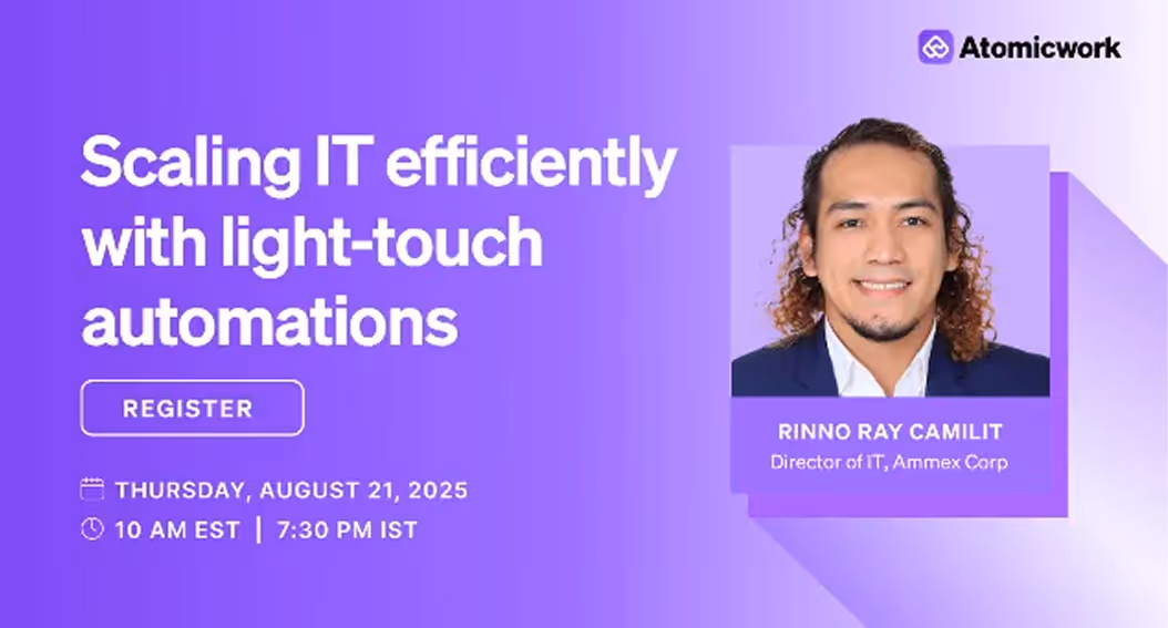 Watch Rinno walk through how the team has practically built these automations in the webinar "Zero-Touch Automations with Atomicwork."