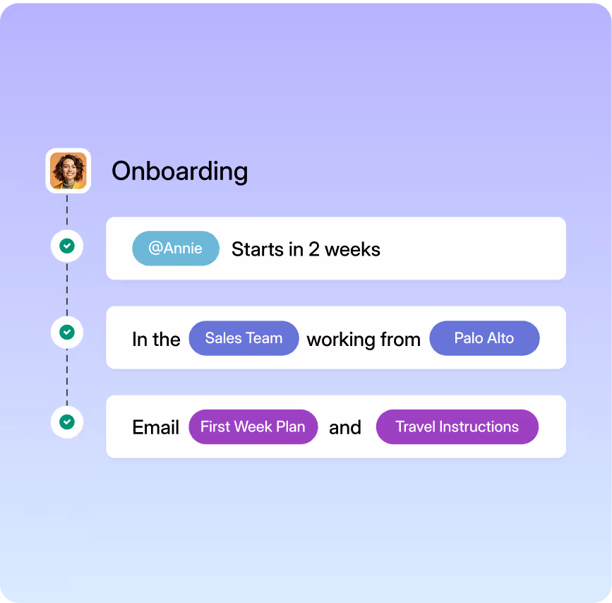 Set your new hires up for success right from day 1. Schedule and automate tasks and comms for the first 30/60/90 days.