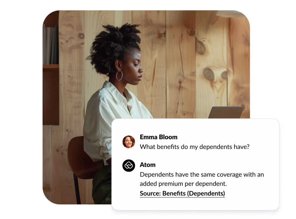 Tap into your enterprise knowledge graph by simply asking Atom what you want to know, wherever you are.