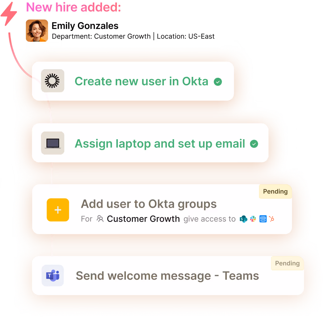 Deliver fast onboarding, secure exits, and instant access recovery while saving IT from repetitive work