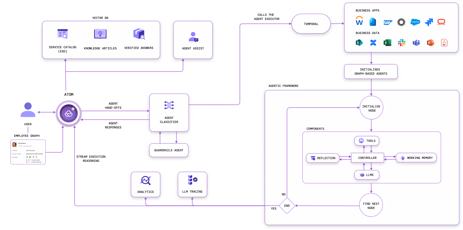 For instance, Atomicwork’s multi-agent architecture meets these demands, letting specialised agents collaborate, reuse components, and evolve securely, turning AI into core infrastructure rather than a bolt-on layer.